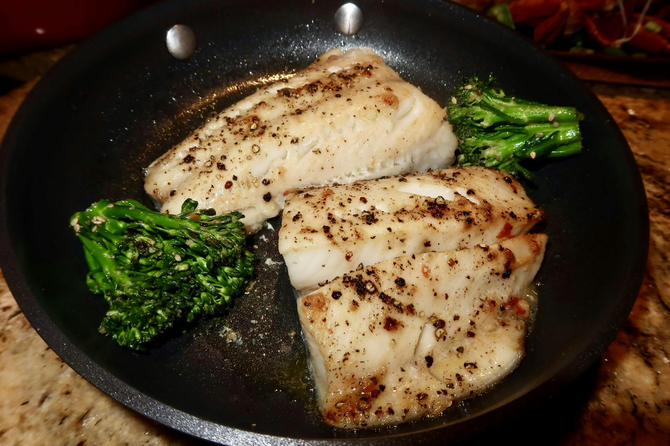 - Fish - We recommend you pat dry coat with your desired cooking oil (we recommend Olive Oil or Grapeseed Oil). Place fish in a heated pan and cook uncovered until browned. Turn your fish over and season with spices then cover the skillet tightly. Reduce heat to medium and cook 6-8 minutes more until fish is opaque throughout.